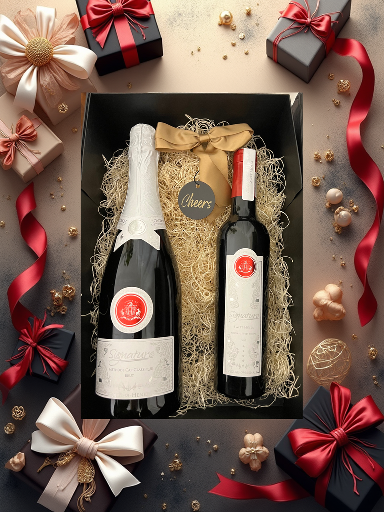 Signature Celebration Box | House of Henkel Méthode Cap Classique + Sweet Moela Natural Sweet Shiraz | Luxury Two-Bottle Gift Set